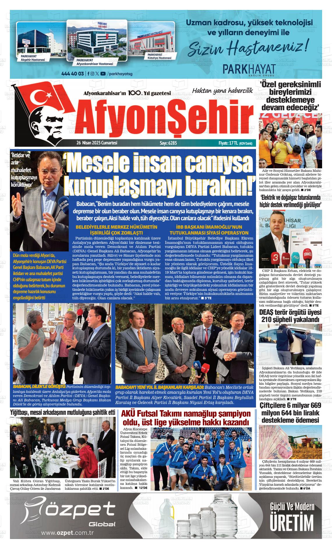 Afyonkarahisar Gazete Manşetleri