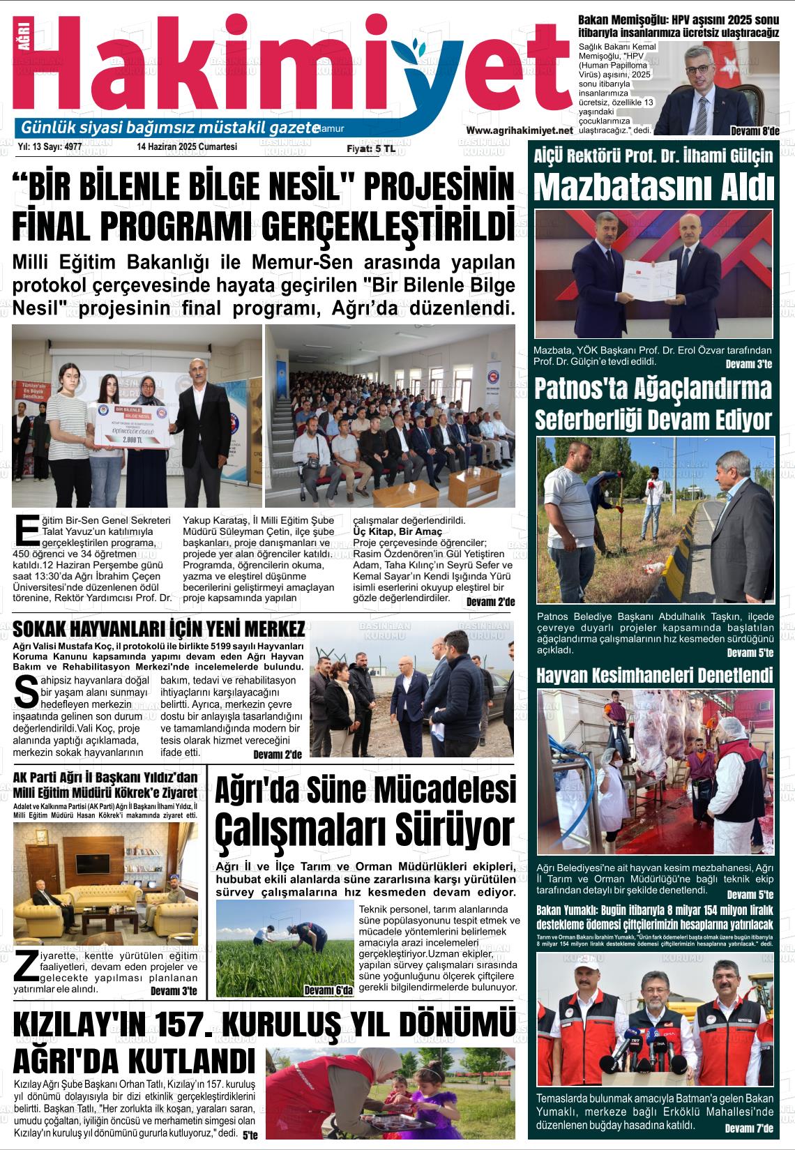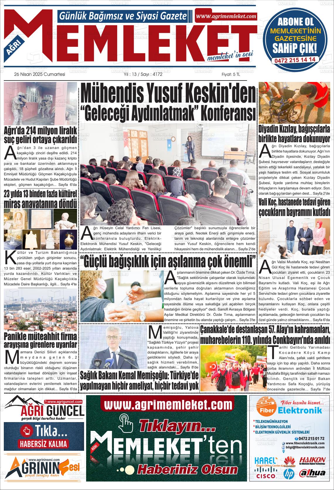 Ağrı Gazete Manşetleri