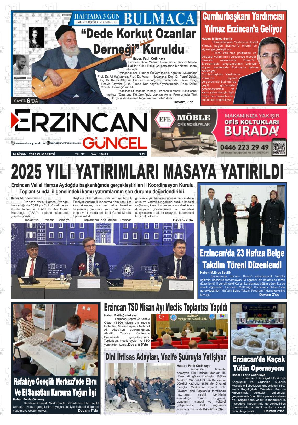 Erzincan Gazete Manşetleri