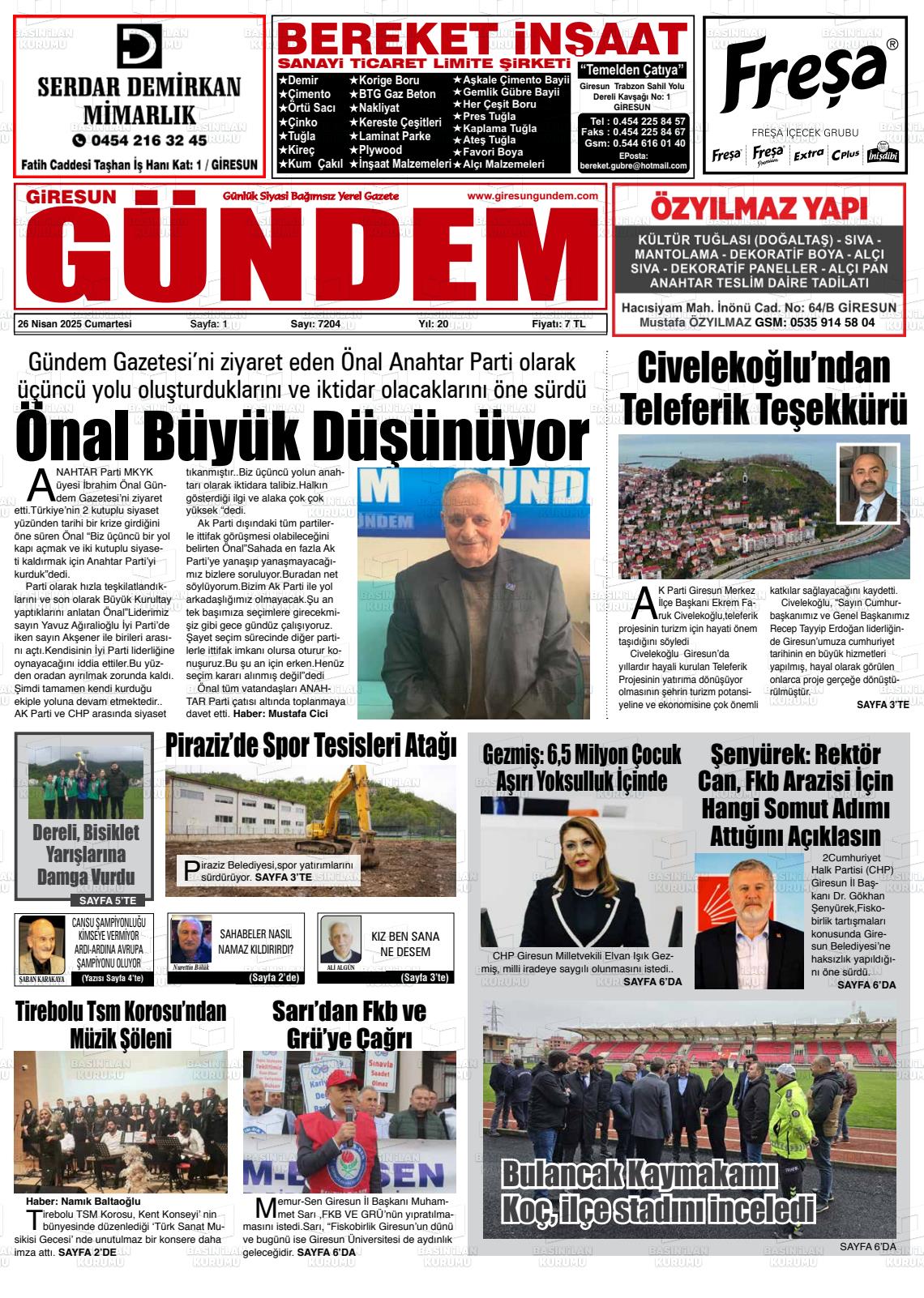 Giresun Gazete Manşetleri
