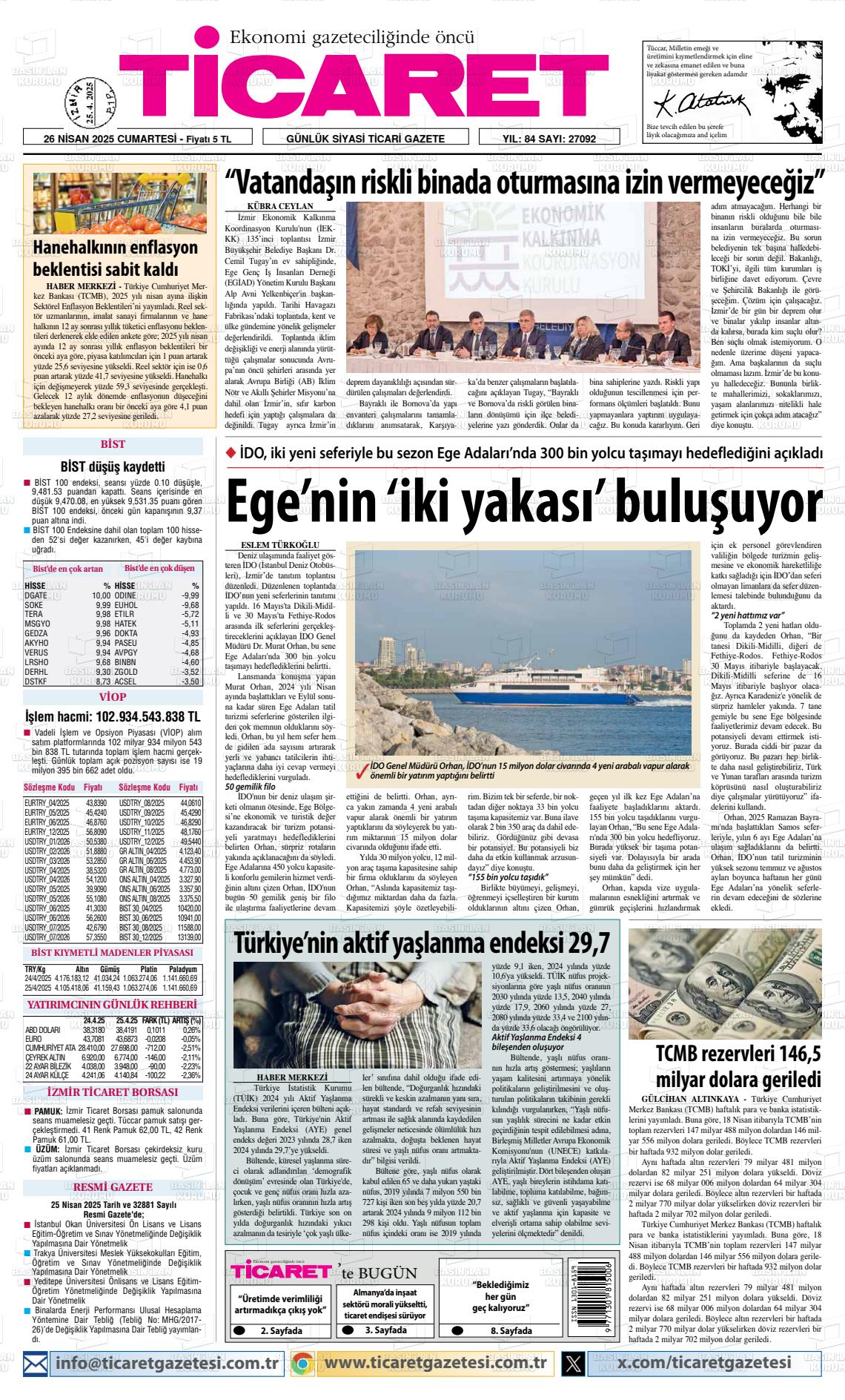 İzmir Gazete Manşetleri