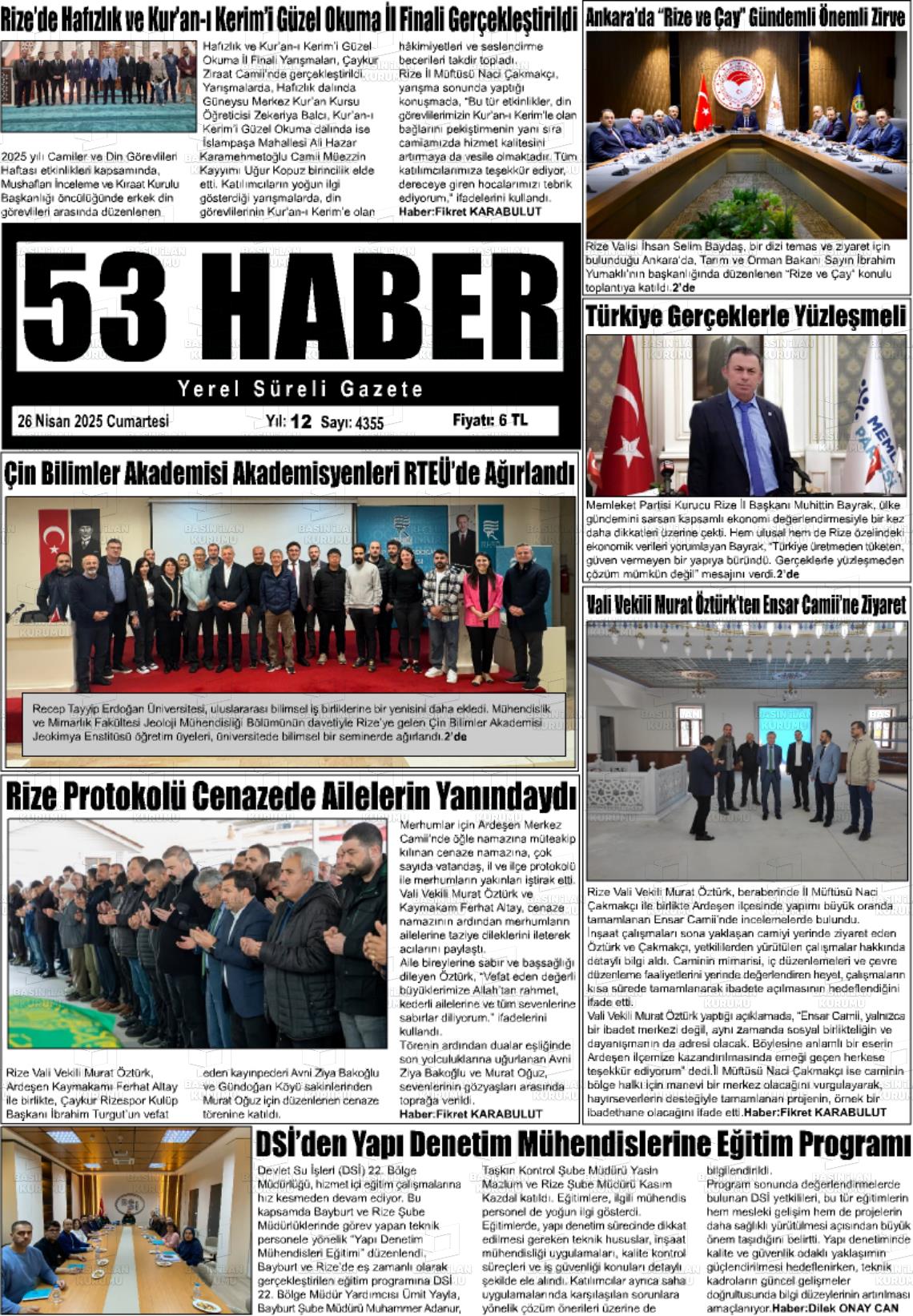 Rize Gazete Manşetleri